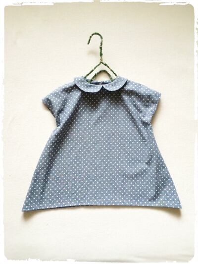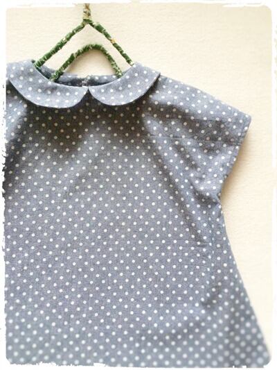 【90size】ラウンドカラーゆったりワンピース *ダンガリードット*