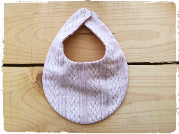 かわいいスタイ *おとぼけくまさん×縄編みプリント* 優しいピンク