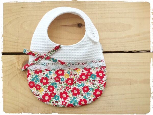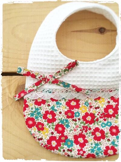 かわいいスタイ *ビビッドなお花柄×リボン* レッド