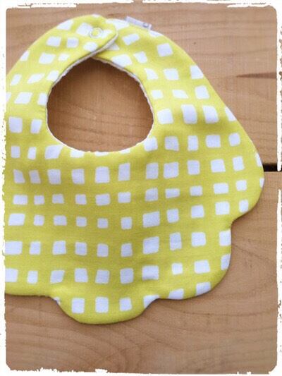 【再販です】☁︎もくもく☁︎ かわいいスタイ *Wガーゼ・手描き風チェック* イエロー