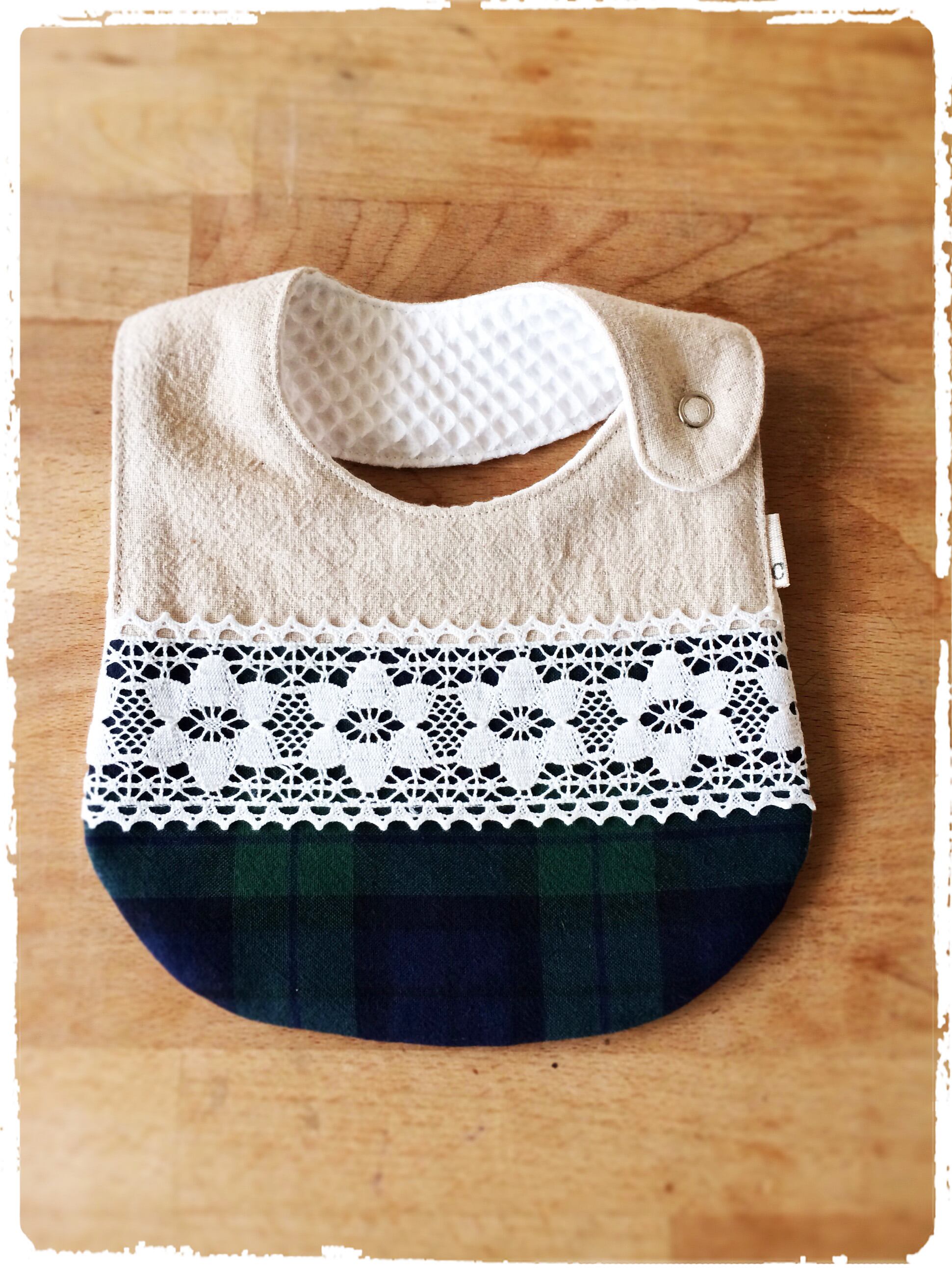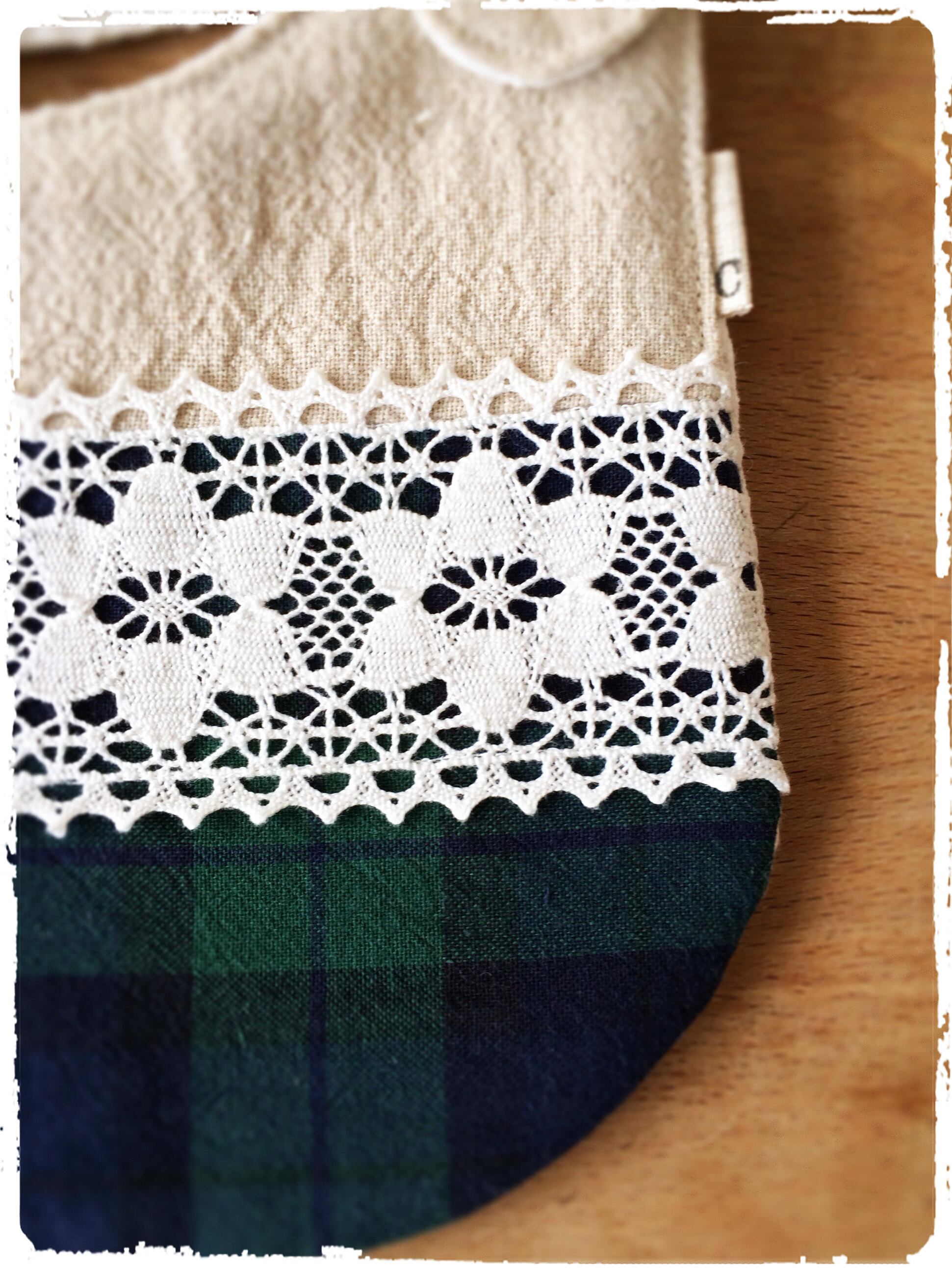 かわいいスタイ *ブラックウォッチ×幅広レース*