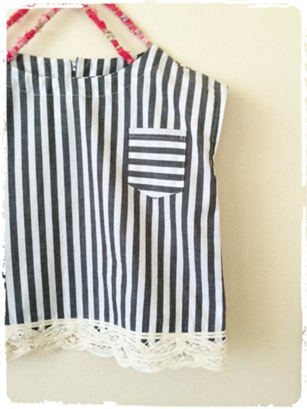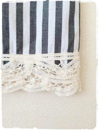 【90size】フレンチスリーブのストライプブラウス *裾バテンレース*