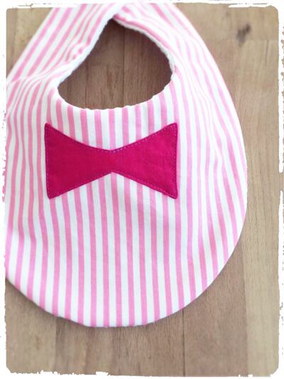 かわいいスタイ *ストライプ×リボンアップリケ* ピンク